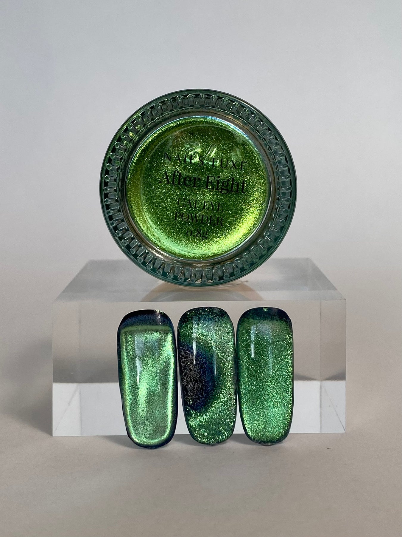 - These powders can be used for Cat eye effects & chromed onto the nail
