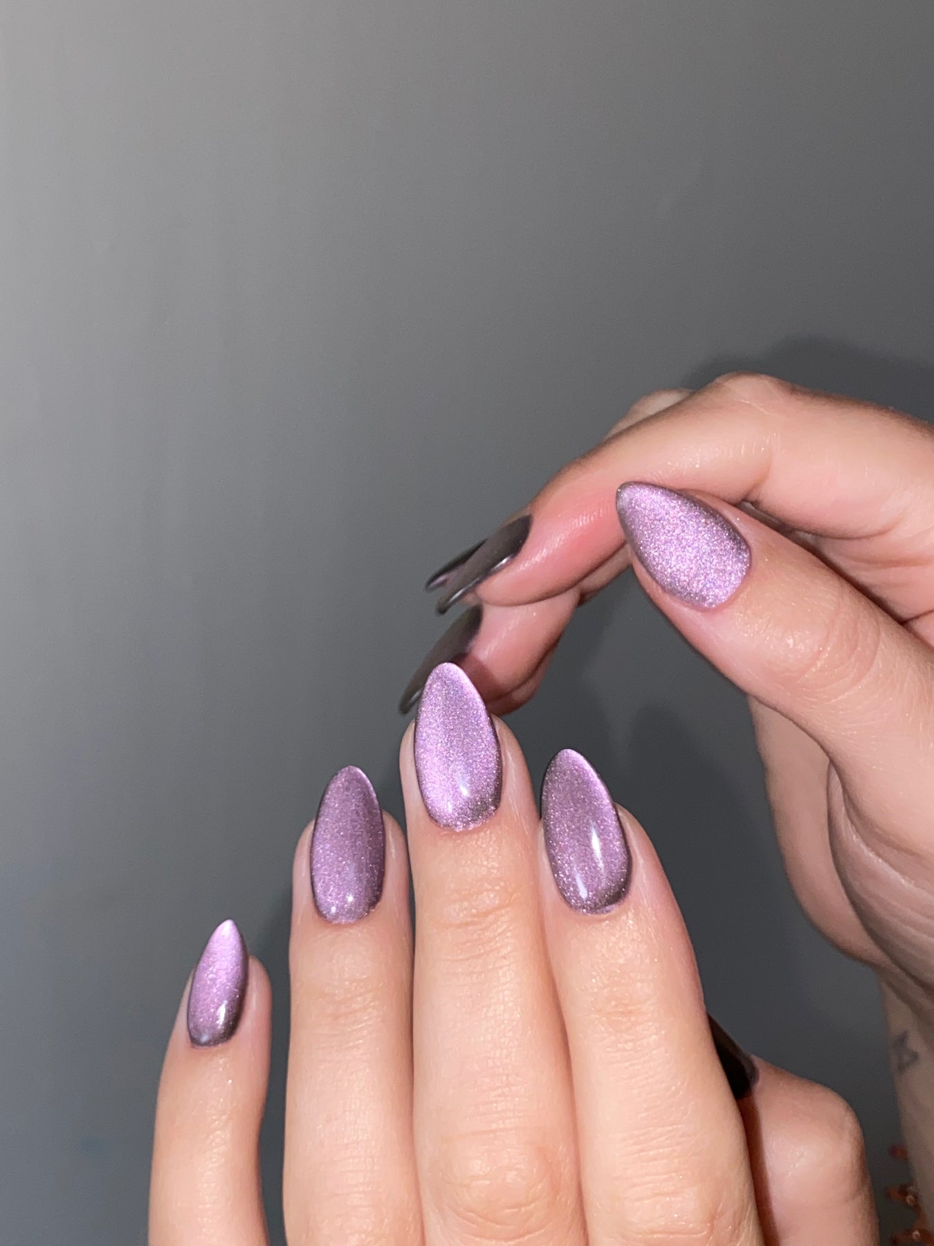 5. Hold the NAILS-LUXE Magnet over the nail to create your desired cat eye effect, you can then cure