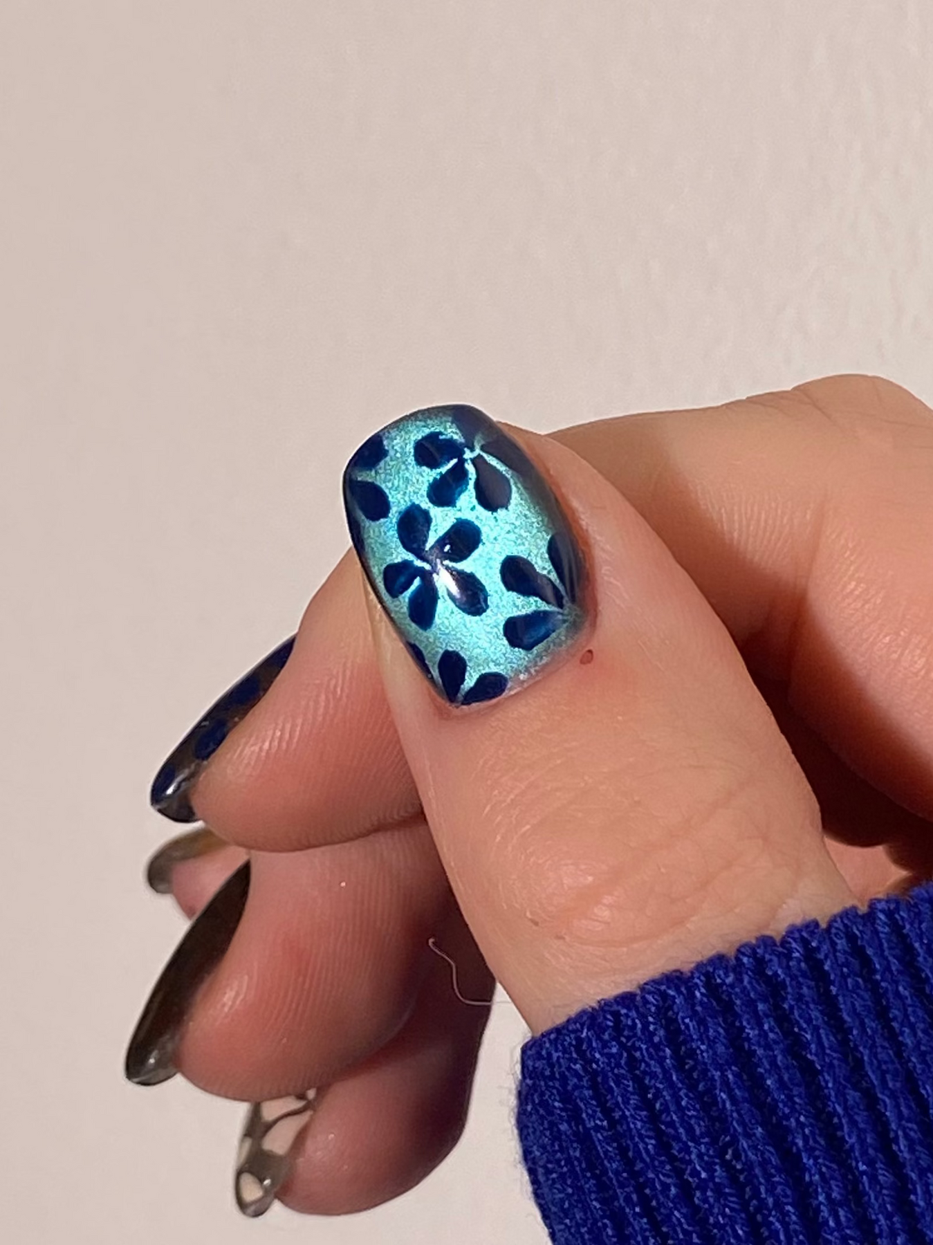 3. Using the NL Petite Sponge, rub the cat eye pigment onto the nail for a chrome effect