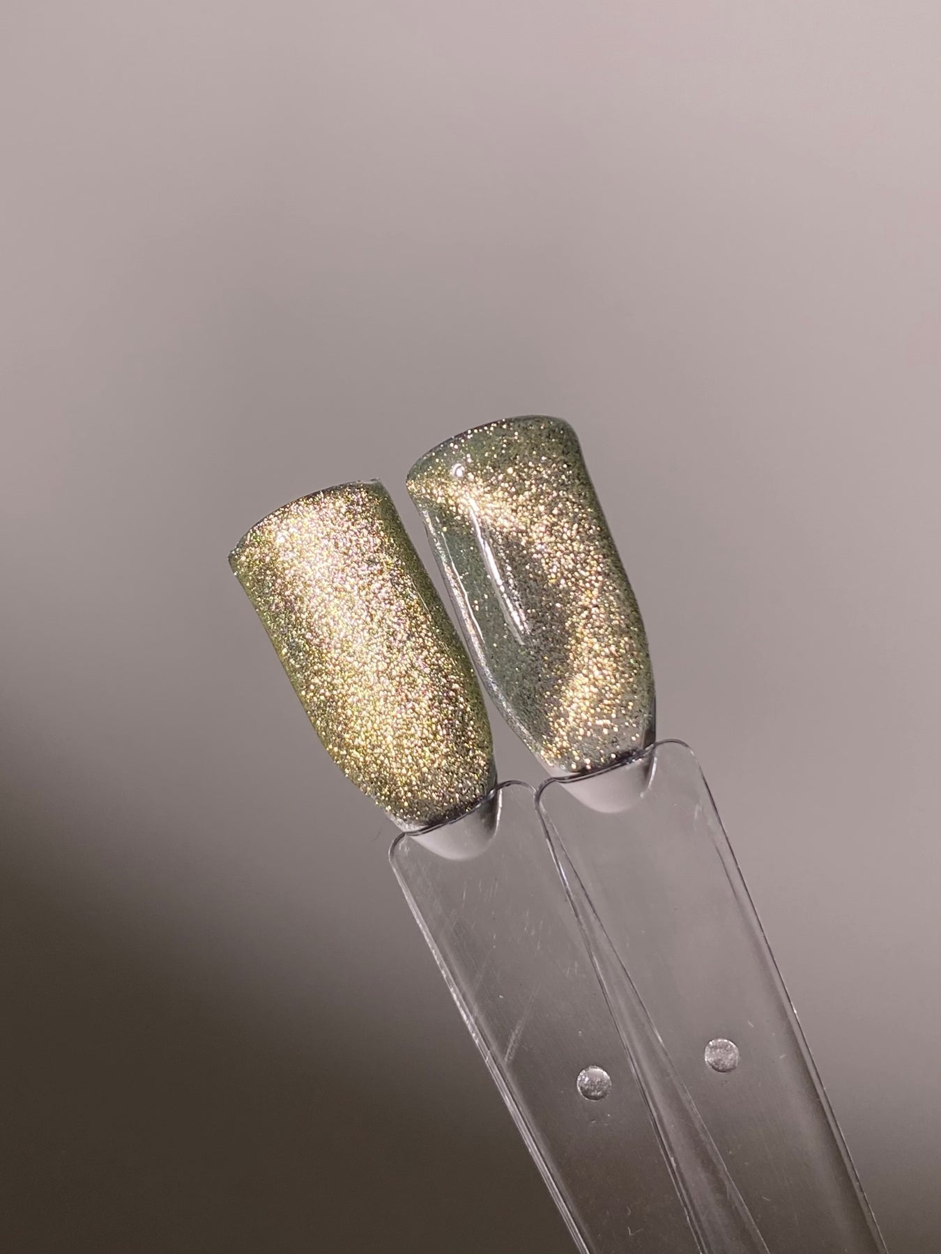 A champagne-toned gold with a super glittery cat eye finish