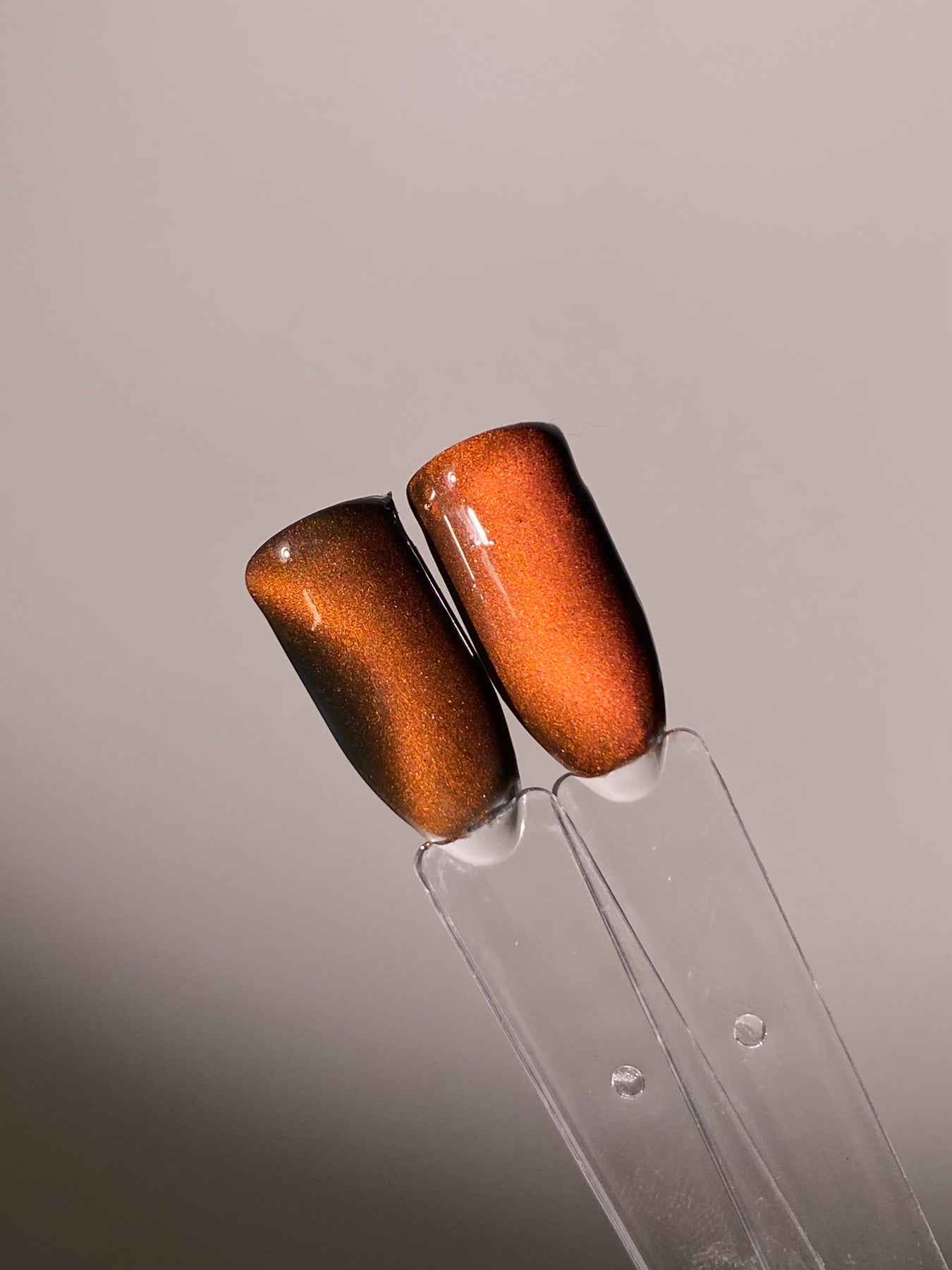5. Hold the NL Magnet over the nail to create your desired cat eye effect. You can then cure
