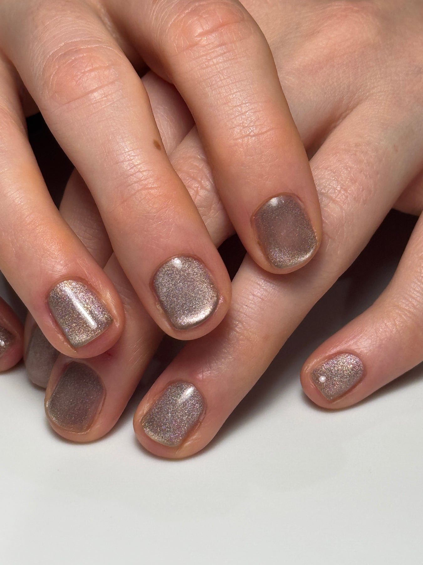 Lunar is a soft, metallic cat eye pigment with a muted silver tone, inspired by the serene glow of the moon