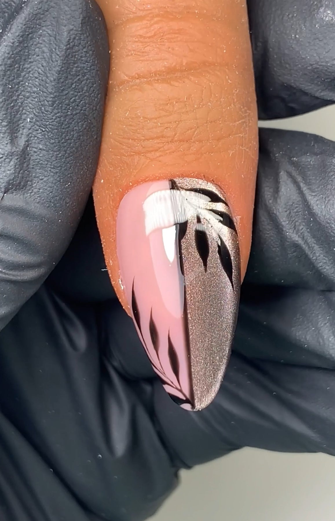 2. Apply your chosen colour and cure. White & Black shades are especially popular for making the cat eye effect pop